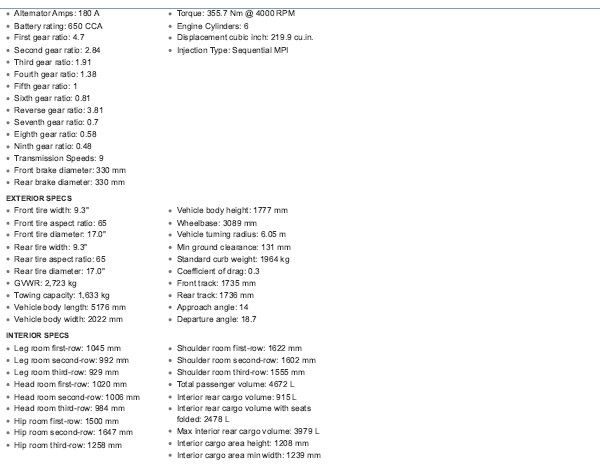 - Engine: 3.6L Pentastar VVT V6 engine with Stop/Start