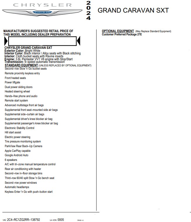 • Model: Chrysler Grand Caravan SXT
